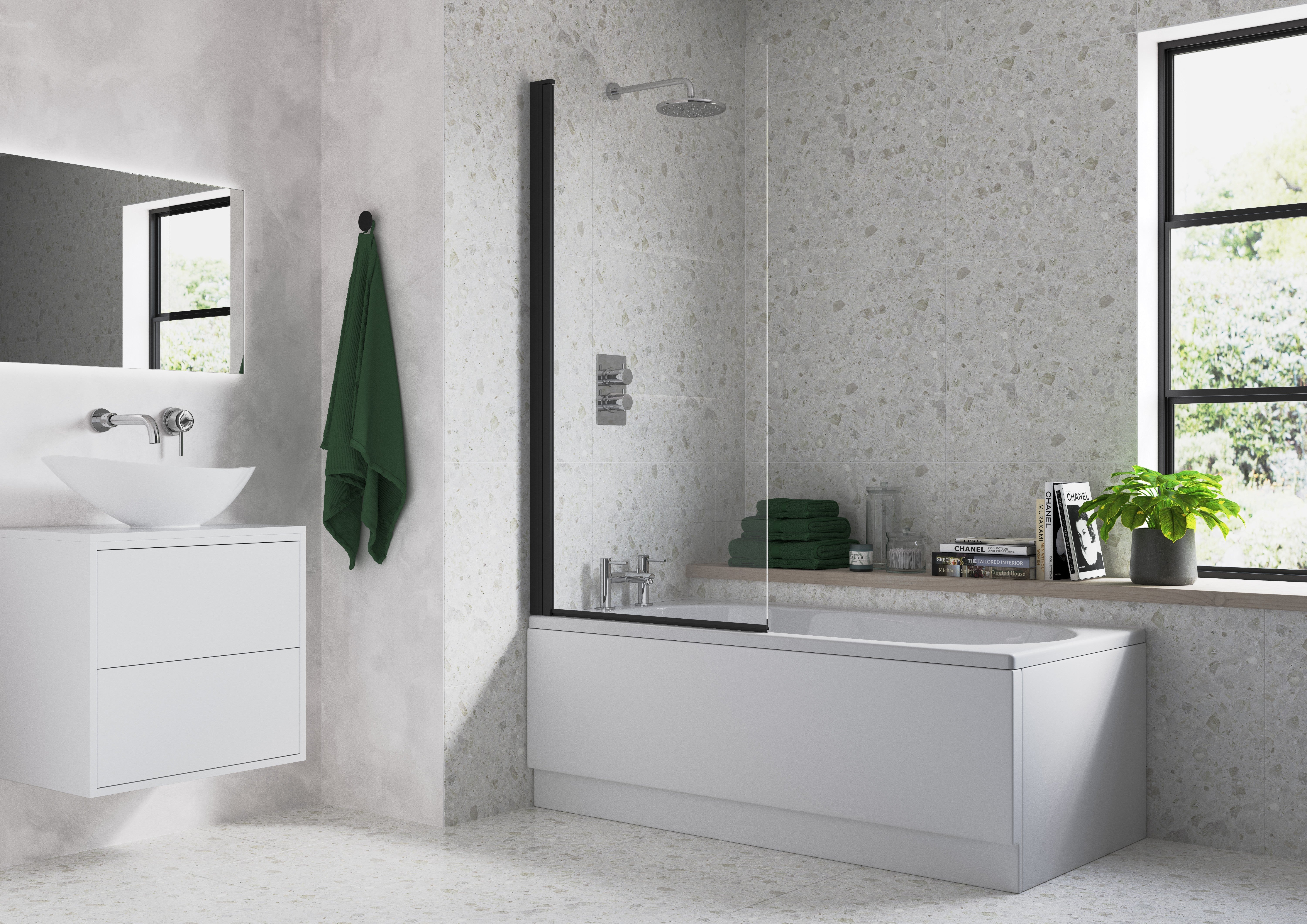 800x1400mm Square Bath Screen (6mm) - Black