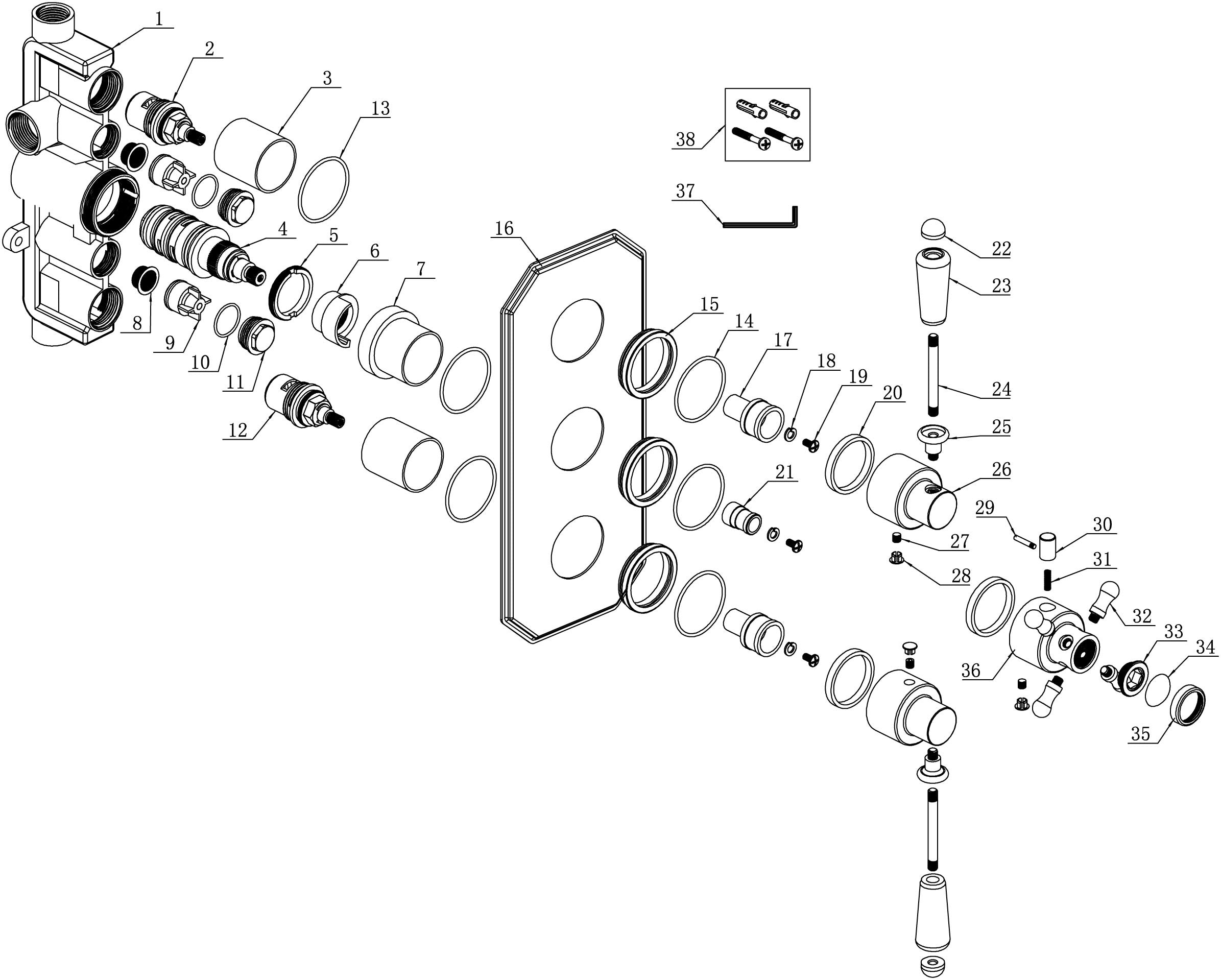Berrys Traditional Lever Thermostatic Two Outlet Shower Valve - Brushed Brass